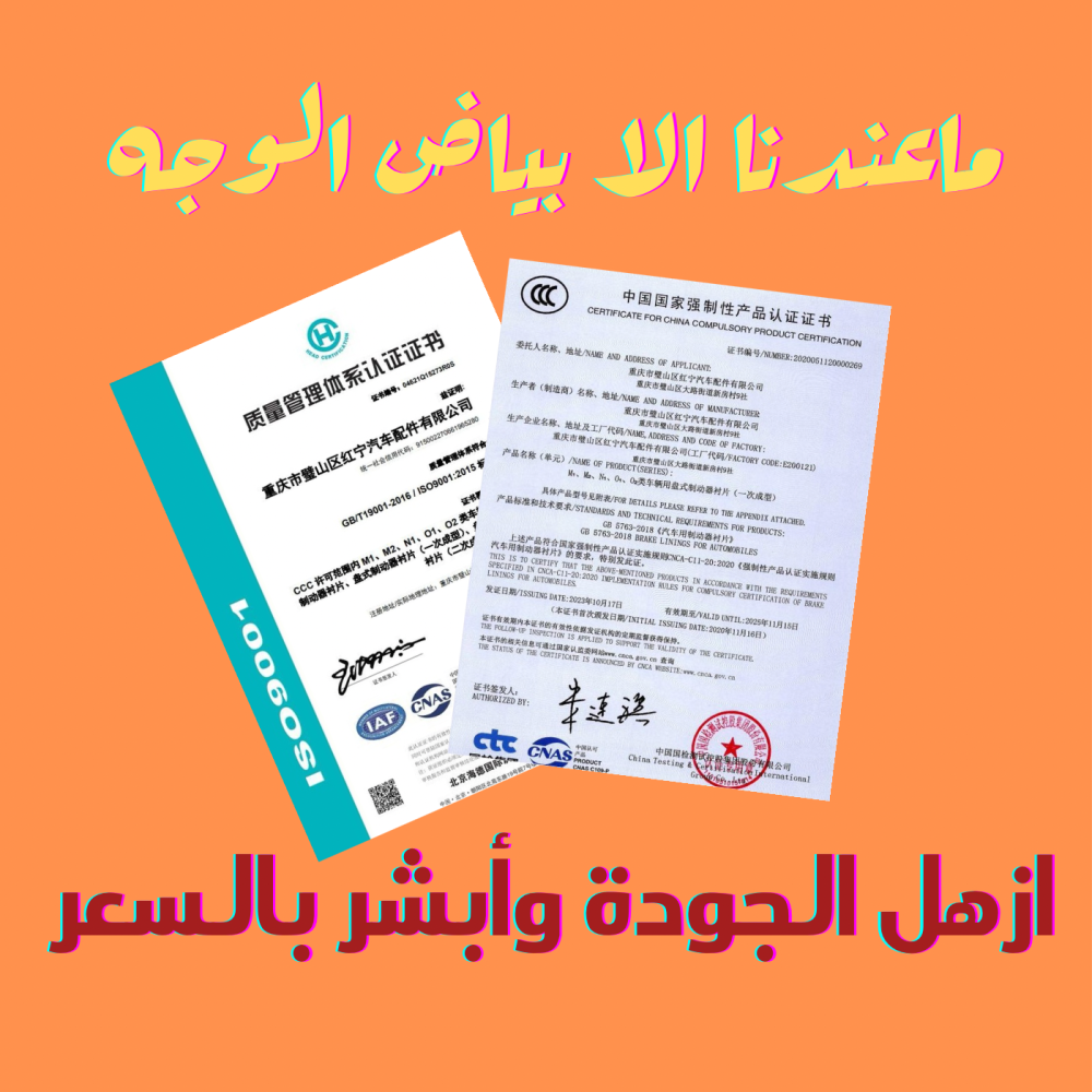 حاصله على مطابقه مواصفات الجودة العالمية ISO و CCC و IAF